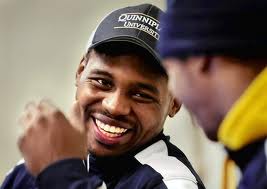 I caught up with Barnett at a recent QU game against St. Francis College in Brooklyn, NY.  What I discovered was not a young man who was scarred and angered by his harrowing past. (One might expect that and could possibly understand.)  Instead, who stood before me was a mature young man with a commanding presence and a gentle spirit. His words were brief, but profound and showed that Marquis refrains from looking back and dwelling on negative circumstances. He’d much rather spend his time looking toward a more promising future.